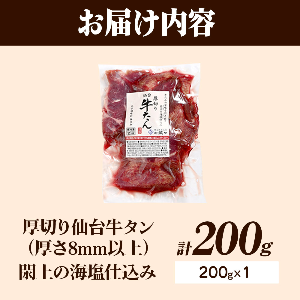 厚切り仙台牛タン(厚さ8mm以上)閖上(ゆりあげ)の海塩仕込み 200g 焼肉 肉 焼き肉 バーベキュー 希少 漁亭 浜や 宮城県 名取市