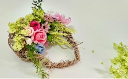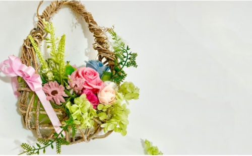 プリザーブドフラワー エッグバスケットリース【フラワースポットベルローズ】 インテリア 飾り 贈り物 ギフト お花 花 アレンジメント 薔薇 バラ 紫陽花 アジサイ ピンク ブルー グリーン かわいい クリスマス A27-26