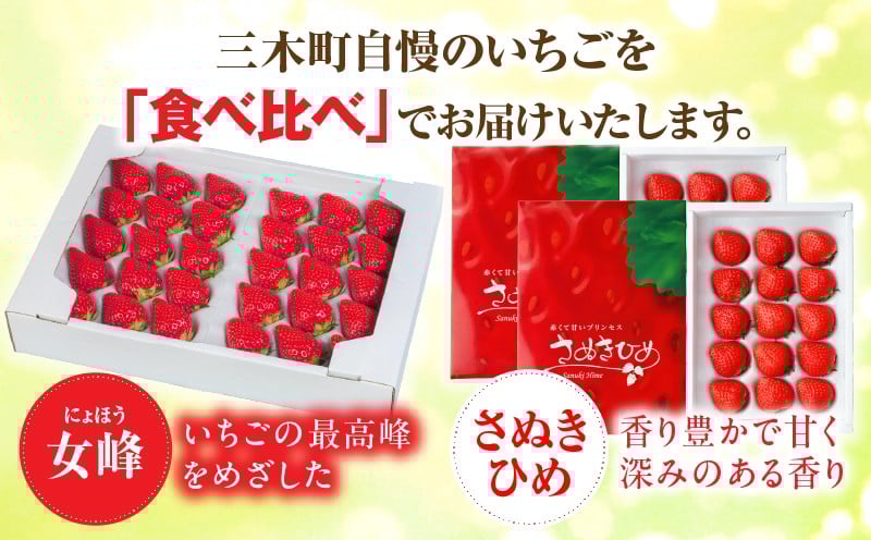 【数量限定】厳選いちご2種 食べ比べセット |スイーツ いちご ストロベリー さぬき姫 さぬきひめ 女峰 食べ比べ 苺 セット 定期便 冷蔵 甘い フルーツ 旬 果物 香川県 デザート 青果物 贈答 プレゼント 化粧箱 贈り物 旬 おすすめ 三木町 送料無料 |_mk006-g001