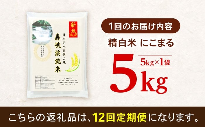 - 【12回定期便】 精白米(にこまる) 5kg 轟峡渓流米 / 米 白米 精白米 新米 / 轟名水ファーム高来 / 諫早市 [AHFF014]