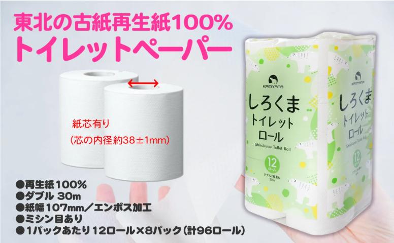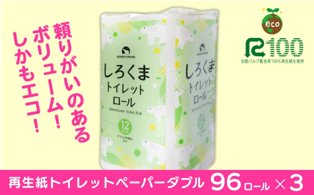 - 【定期便3回】 【ふるさと納税】しろくまトイレットペーパー ダブル 96ロール 定期便 3ヵ月 ふるさと納税 無香料 まとめ買い 大容量 日用品 生活必需品 消耗品 備蓄 再生紙 人気 おすすめ ランキング 送料無料 岩手県 一関市