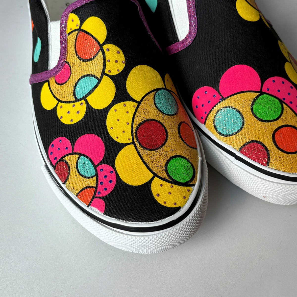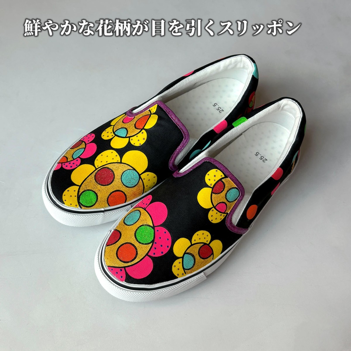 - スニーカー フラガール 手描きスリッポン 左右非対称デザイン レディース メンズ ユニセックス ワイズ 2E 22.0~28.0cm【受注制作】