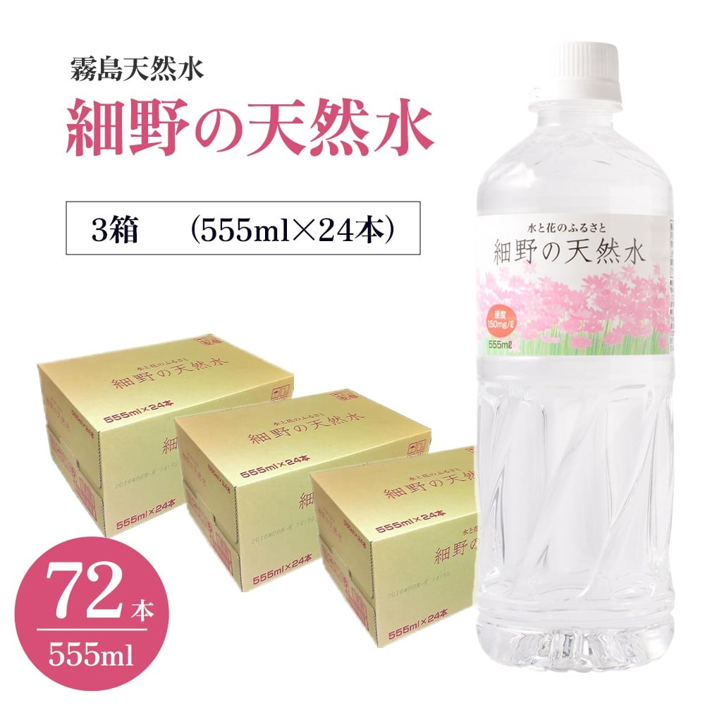 - 細野の天然水 555ml×24本 3箱(ミネラルウォーター 天然水 水 中硬水 シリカ ミネラル 美容 健康 人気 宮崎県 小林市)