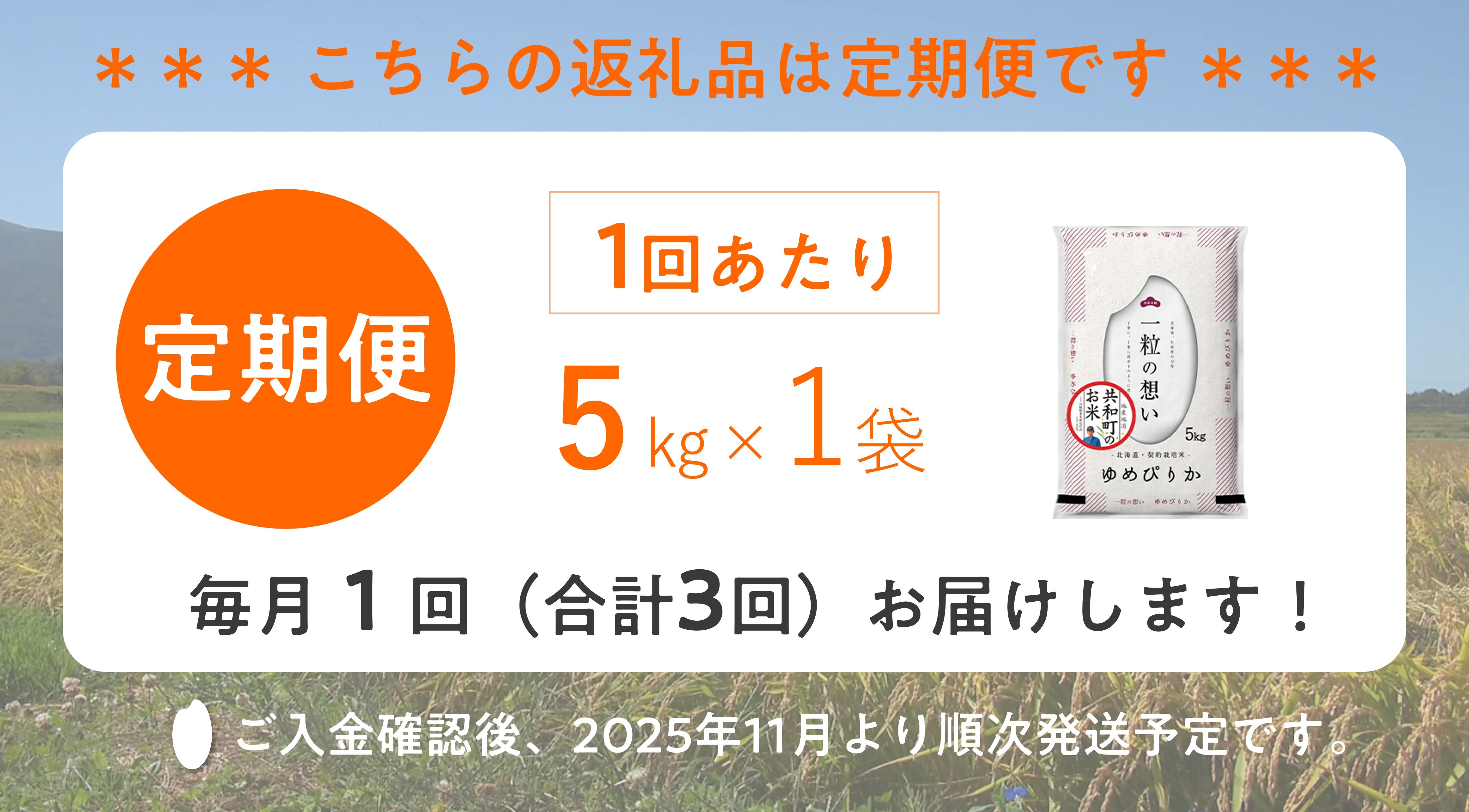 - 〈令和7年産〉 定期便 3ヵ月連続お届けゆめぴりか 5kg 精米 北海道 共和町 共和町米生産友の会 ※沖縄・離島への配送不可