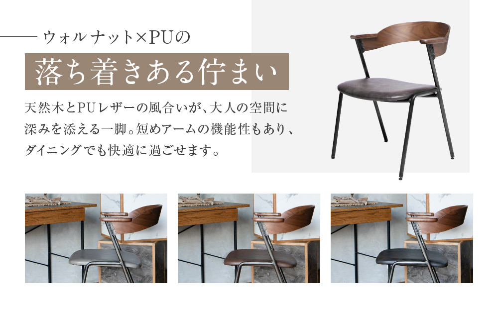 【a.depeche】ダニス ショート アームチェア ウォルナット PU<グレー>|京都 インテリア 人気ブランド 椅子 チェア おしゃれ[ 京都 インテリア ブランド パリスタイル 人気 おすすめ 椅子 おしゃれ 家具 雑貨 通販 送料無料 ふるさと納税 ] 261009_A-YJ039VC01