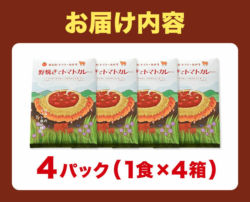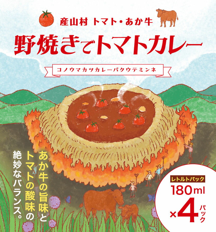 - 【ふるさと納税】産山村・トマト・あか牛 野焼きでトマトカレー レトルトパック 4箱 各180ml 熊貴農園《30日以内に出荷予定(土日祝除く)》熊本県 阿蘇郡 産山村 カレー トマトカレー トマト あか牛 レトルト