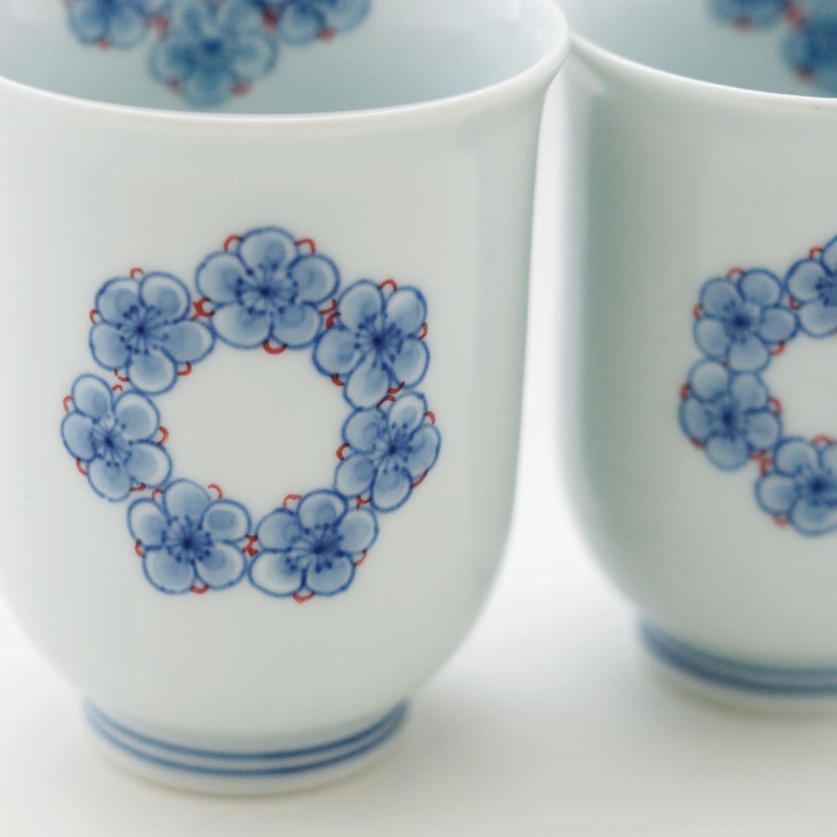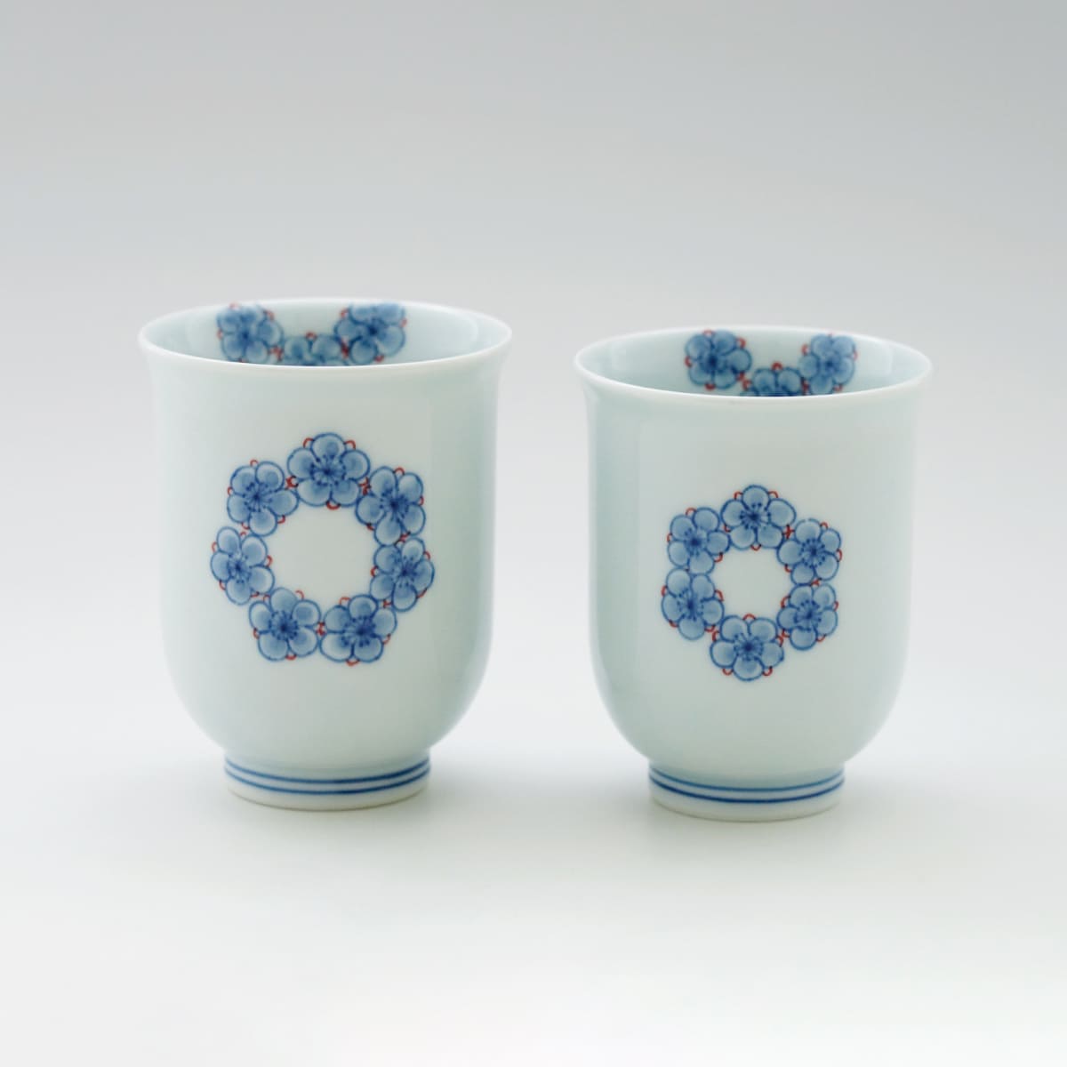 - 【ふるさと納税】しん窯 青花 染錦梅文反り組湯呑 有田焼 湯呑み ゆのみ カップ 2個 セット ギフト 贈答 35000円 3.5万円 A35-538