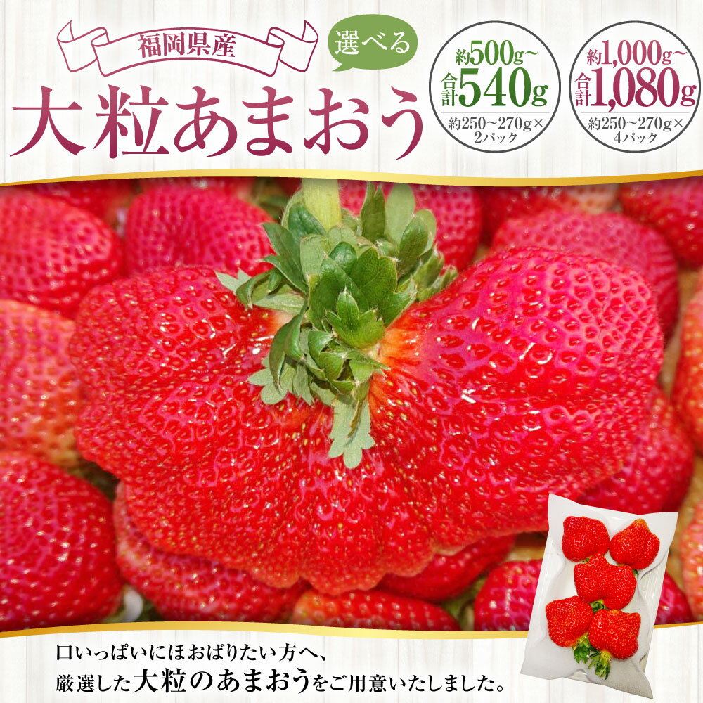 - 【ふるさと納税】<選べる容量>大粒あまおう (約250~270g×2パック (合計約500~540g) / (約250~270g×4パック (合計約1000~1080g) ) 【2026年2月上旬~4月上旬発送予定】 / あまおう いちご イチゴ 苺 フルーツ 果物 九州 国産 福岡県 遠賀町 冷蔵 送料無料