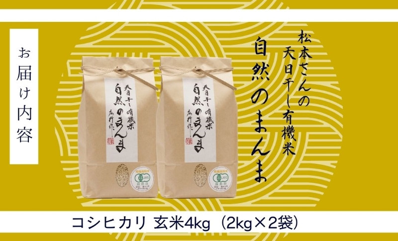 【令和7年産米】【数量限定】松本さんの天日干し 玄米 コシヒカリ 4kg (2kg×2袋) 有機米 ゆず太郎の郷( JAS 認証 )楢葉町産【 米 玄米 有機米 天日干し コシヒカリ 4kg 福島県 福島県産 楢葉 浜通り 】