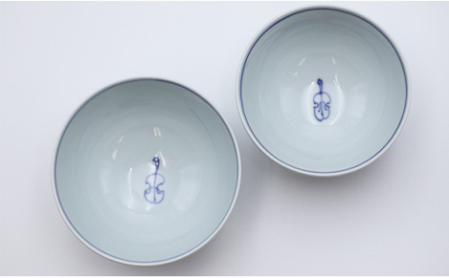 音楽が好きなあなたに♪ ハーモニー二重奏ペア飯碗 しん窯・青花 A26-3