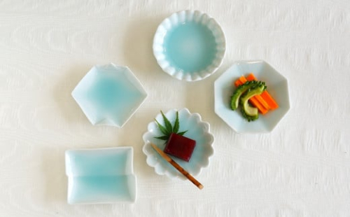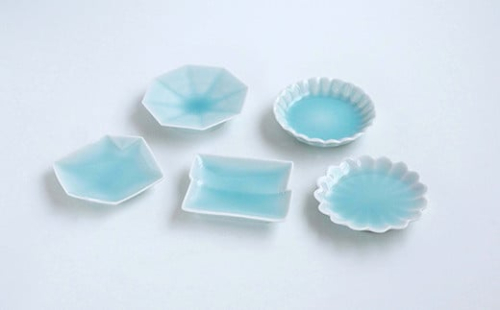 有田焼 青白磁おてしょ皿5枚セット 金照堂 有田焼 皿 小皿 食器 器 30000円 3万円 A30-669
