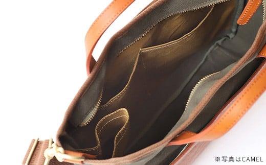 牛革かぶせ×帆布 手提げショルダー キャメル 【12203-0377-4】
