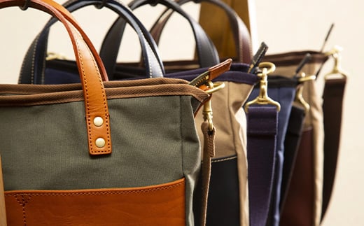 - 牛革かぶせ×帆布 手提げショルダー キャメル 【12203-0377-4】