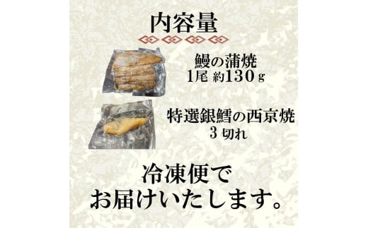 国産 うなぎ の 蒲焼 1尾 約130g 特選 銀だら の 西京焼 3切れ セット 冷凍 関西風 鰻 魚 高級魚 ウナギ 九州産 蒲焼き かばやき うな重 ひつまぶし タレ 山椒 銀鱈 銀ダラ ギンダラ ぎんだら 焼き魚 焼魚 個別包装 浪花寿司 老舗 職人 おかず 夕飯 御祝 下関 山口