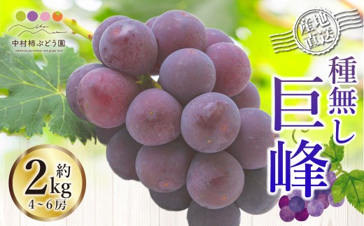 - 【先行予約】中村柿ぶどう園 種なし巨峰 4房から6房(約2kg) 【2026年8月上旬~9月上旬より順次発送予定】 葡萄 ぶどう ブドウ 果物 くだもの フルーツ 果実 福岡県 うきは市 冷蔵