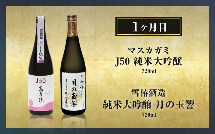 - 【定期便6ヶ月毎月お届け】【20セット限定】日本酒3蔵飲み比べセット 12本(720ml×2本×6ヶ月)《2026年1月以降順次発送》マスカガミ 雪椿酒造 加茂錦酒造 贈答 加茂市 マルダイ有本