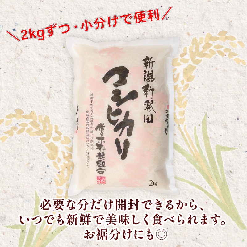 【定期便】令和7年産 新潟県新発田産 特別栽培米コシヒカリ4㎏(2㎏×2袋)×6か月 選べる お届け開始時期 米 お米 ごはん 白米 コシヒカリ 佐々木耕起組合 プレゼント ギフト 贈答 定期便 特別栽培米 佐々木耕起 佐々木こうき 新潟県 新潟産 新発田産 D19_002P
