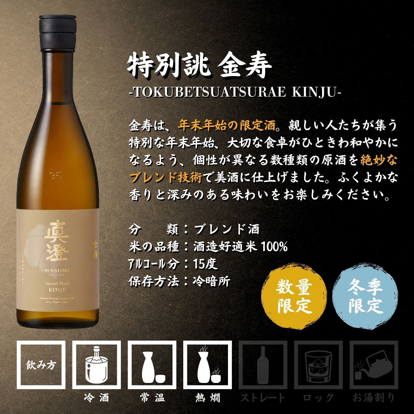 - 真澄 年末年始限定酒 あらばしり 特別誂 金寿 飲み比べ セット 720ml 2本 箱入 冬季限定 季節限定 純米吟醸 生原酒 ブレンド酒 日本酒 地酒 酒 食中酒 宮坂醸造 老舗 諏訪五蔵 富士見蔵 新年 年の瀬 お祝い プレゼント ギフト 贈り物 贈答 家飲み 晩酌 お歳暮 信州 長野県 富士見町