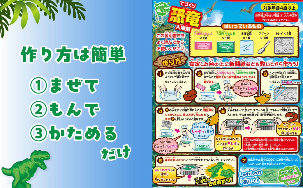 - てづくり 入浴剤 恐竜 りんごの香り 1回分×3セット 計3個 | バスボム 入浴剤 工作 お風呂 手作り 恐竜 ティラノサウルス トリケラトプス 子供 子ども キッズ お風呂 入浴 遊び 手作りキット 男の子 炭酸ガス バスボムキット 埼玉県 久喜市