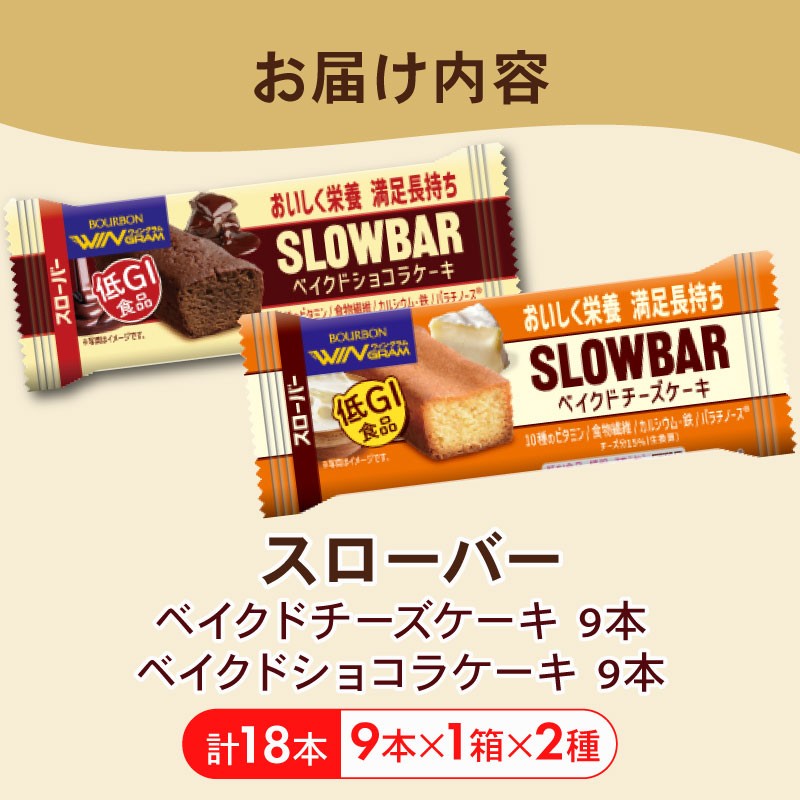 - スローバー ベイクド2種セット 計18本 bourbon ベイクド ショコラ ケーキ チーズ ダイエット 朝食 フィットネス 健康 おやつ お菓子 菓子 防災 非常食 登山 携行食 行動食 栄養調整食品 株式会社ブルボン 新潟県 新発田市 bourbon021