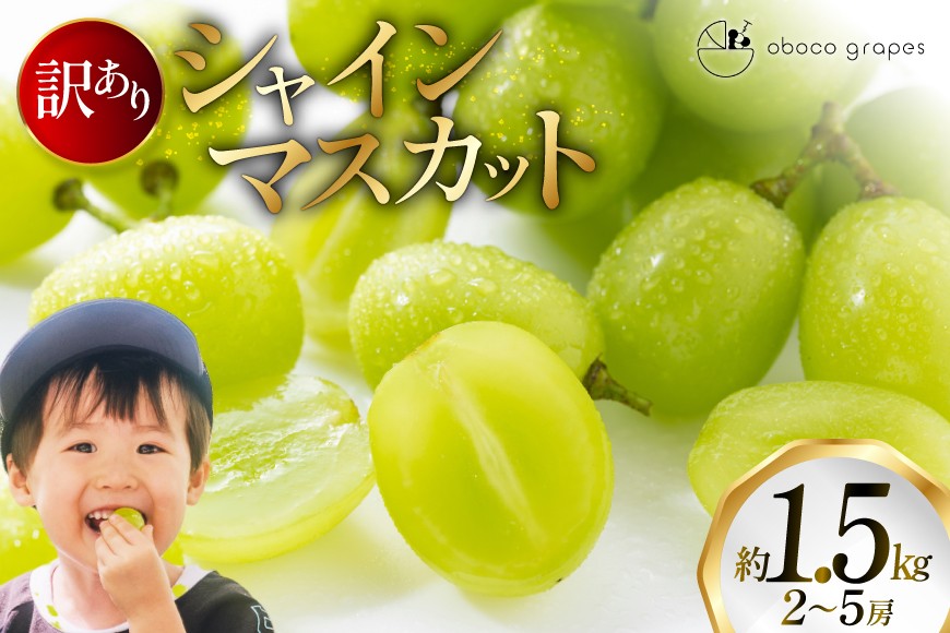 - 【期間限定発送】 シャインマスカット 訳あり 2~5房 約1.5kg [oboco grapes 山形県 高畠町 tk06ayt250004] ぶどう ブドウ 葡萄 ご家庭用 フルーツ 果物 くだもの 1.5キロ 甘い