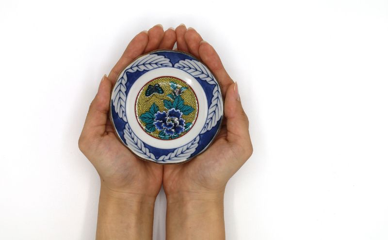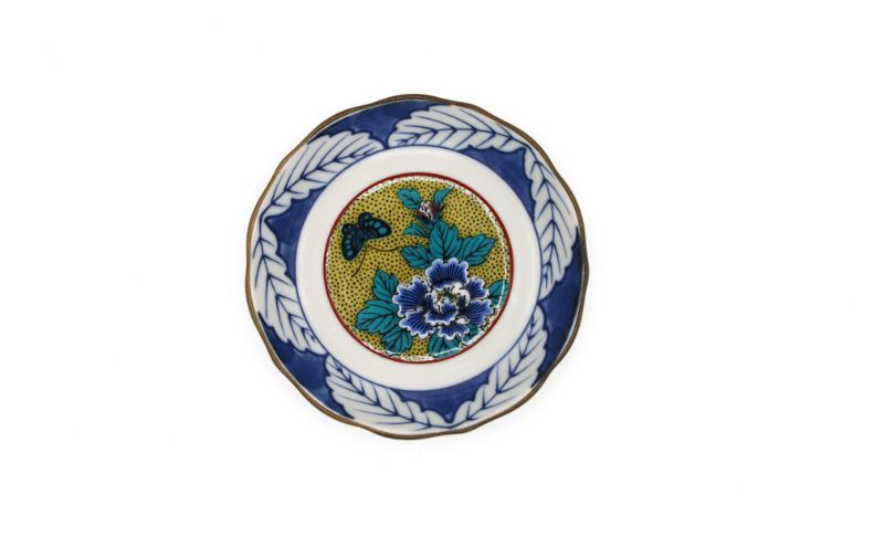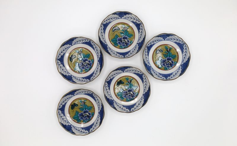 - 九谷焼 3.2号皿揃・吉田屋牡丹(5枚組)