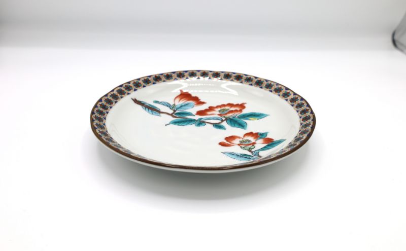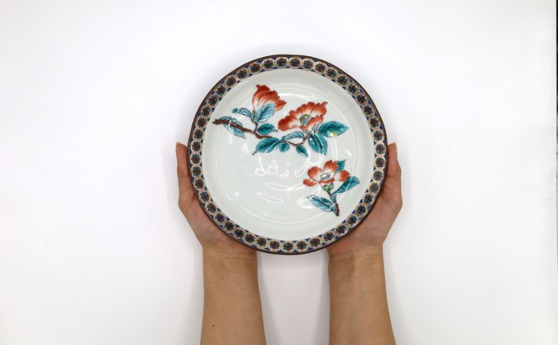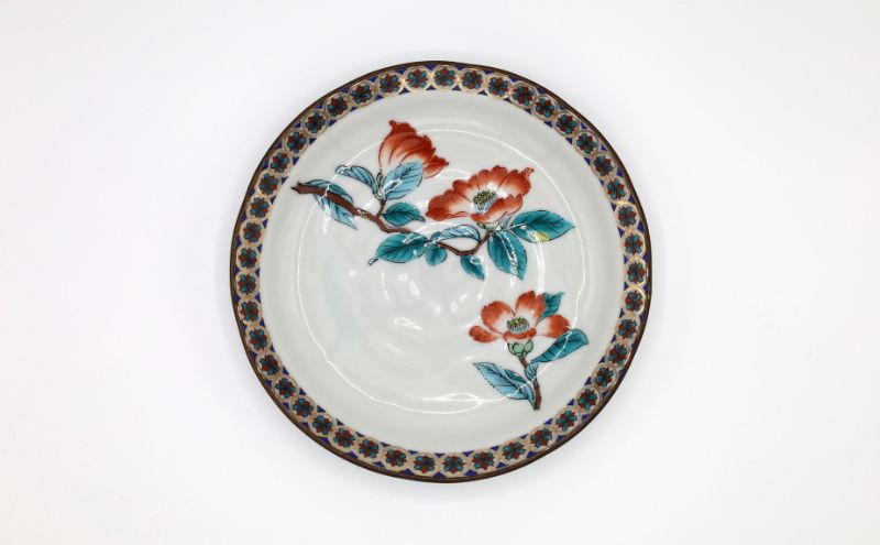 - 九谷焼 6号皿揃・金襴小紋五草花(5枚組)