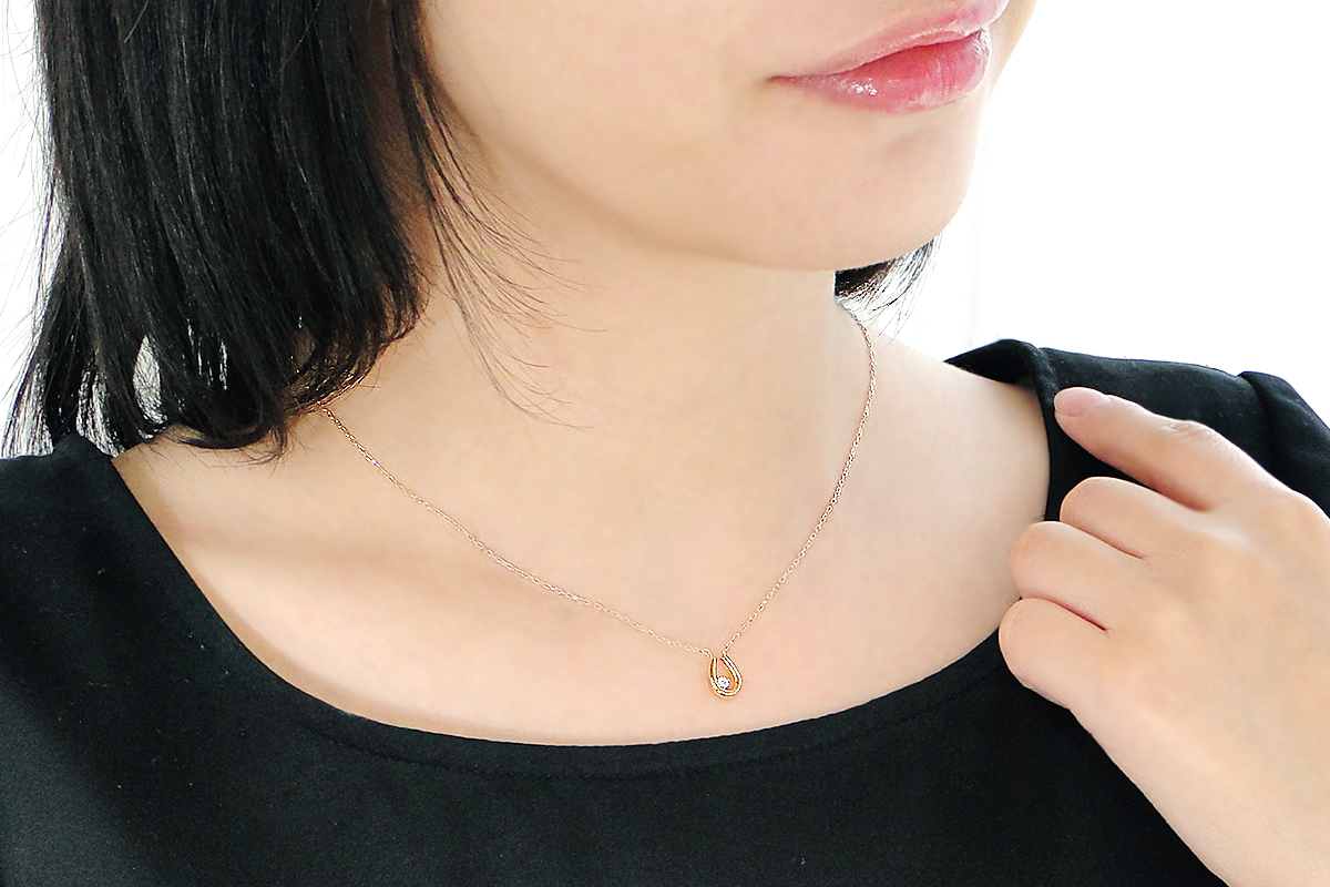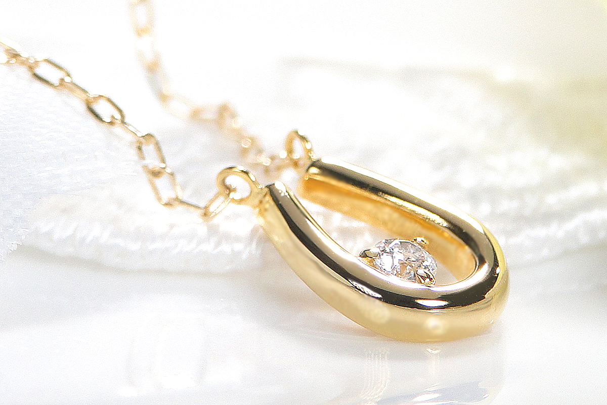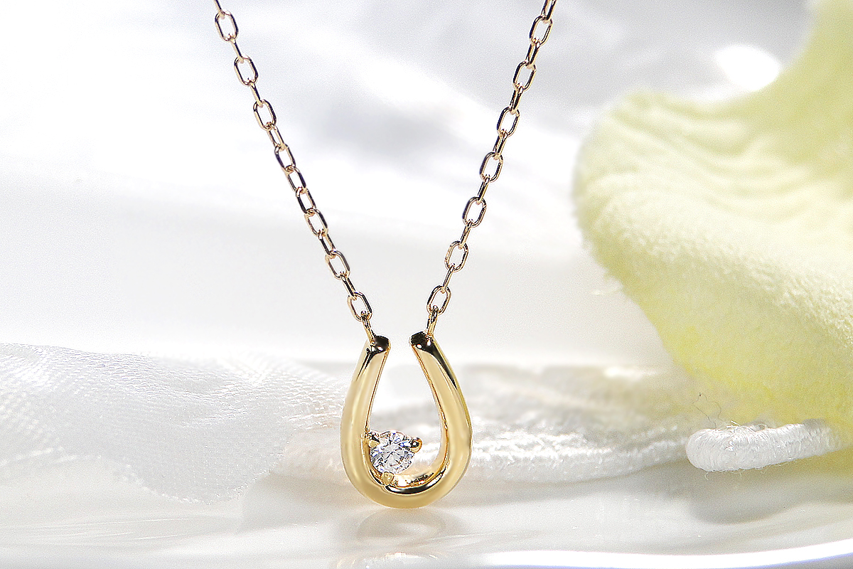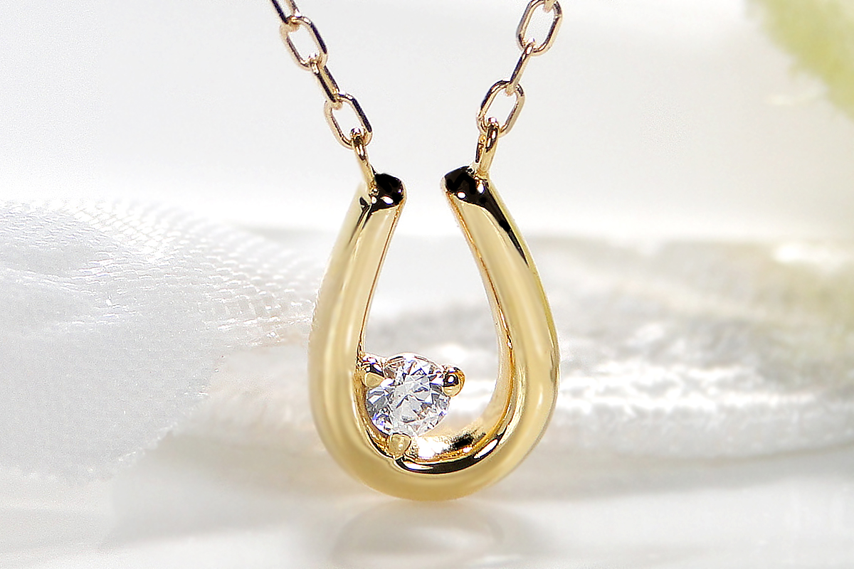- 【0.05ct】K18YG 馬蹄 一粒ダイヤモンドネックレス EmN0022 SWAV017