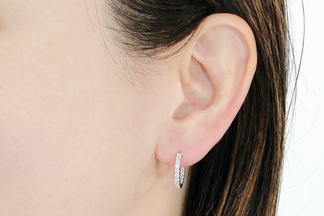 K18WG【0.7ct】ダイヤモンド中折れフープピアス【17mm】 CSP00070 SWAV031