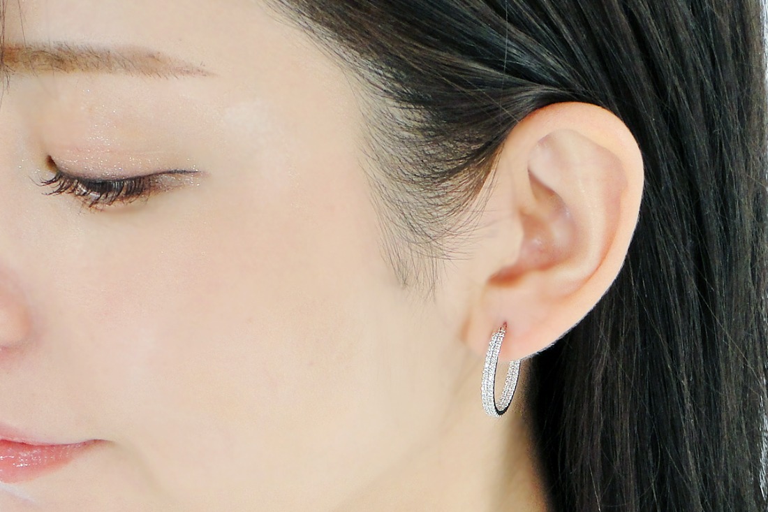 - K18WG 【1.0ct】ダイヤモンドエタニティフープピアス【20mm】 CSP00052-18W SWAV034