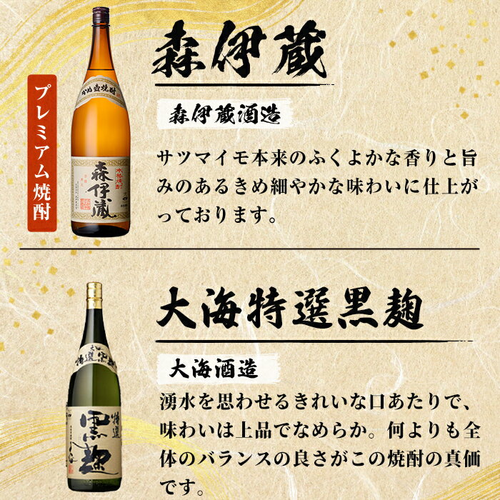- 【ふるさと納税】【数量限定】【森伊蔵1本入り】3蔵 厳選芋焼酎18本セット(計32.4L・各1.8L×18本)焼酎 芋焼酎 芋 酒 一升 水割り お湯割り ロック 森伊蔵 森伊蔵酒造 大海酒造 若潮酒造 鹿児島 飲み比べ セット【そつや きたかた】J18-3329