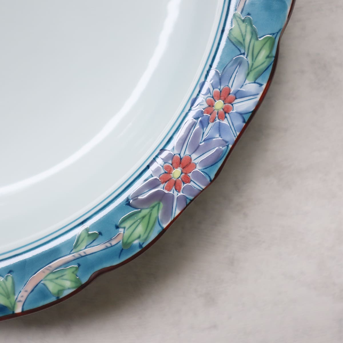 - 【ふるさと納税】【アウトレット】有田焼 古染鉄仙突立 リム付 25cm 鉢【 まるふく 】食器 うつわ 器 訳あり 青 赤 クレマチス A30-802