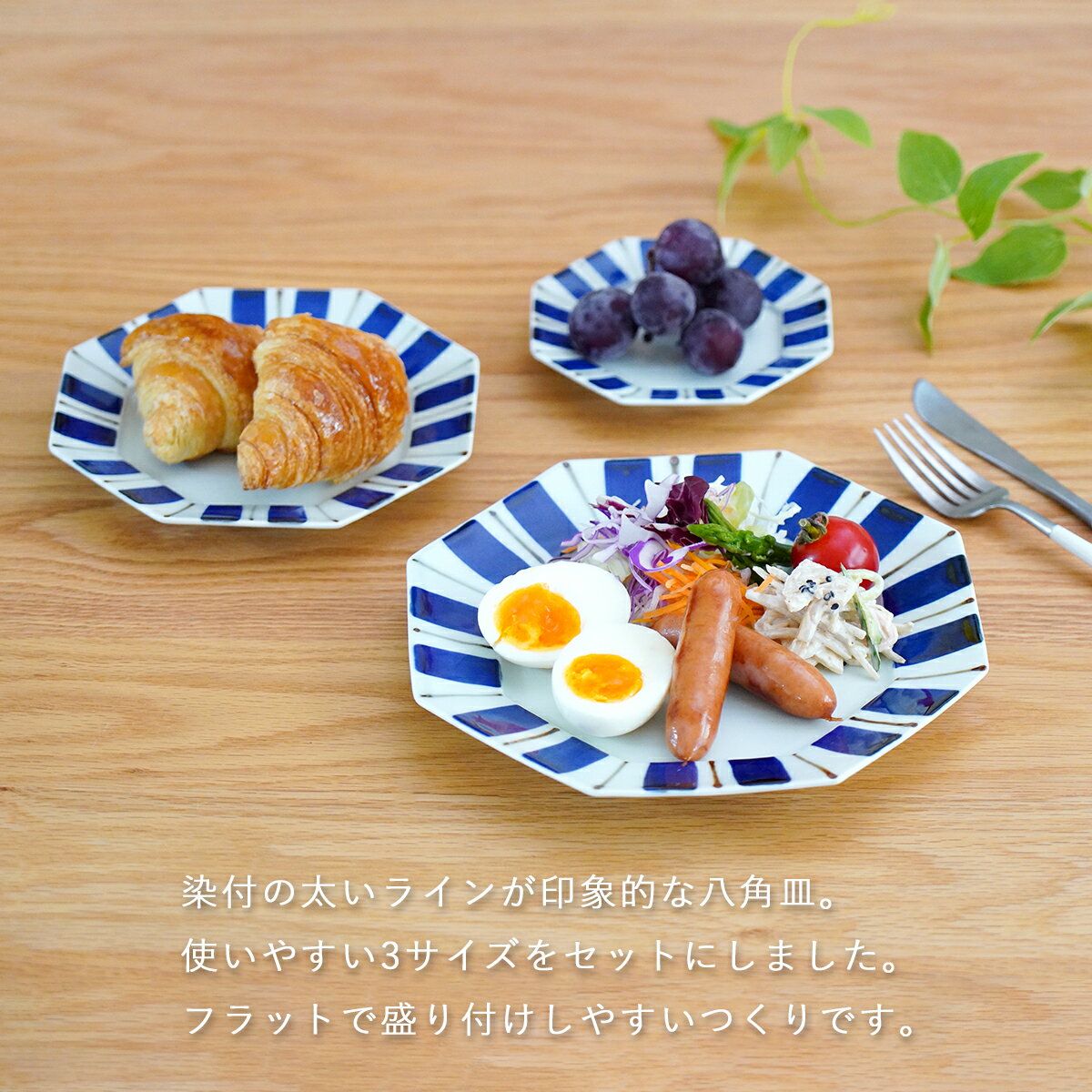 - 【ふるさと納税】有田焼 皓洋窯 ゴスさび十草八角プレート 3枚セット【藍土】食器 器 うつわ 和食器 染付 八角皿 プレート 35000円 3.5万円 A35-493