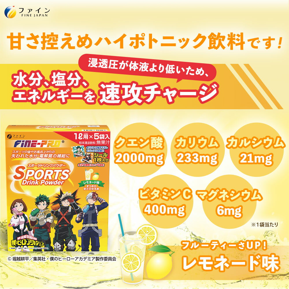 - 【ふるさと納税】 【毎月定期便】 スポーツドリンク レモネード味 5袋入り 1ケース 全3回 | スポドリ レモネード ヒロアカ 僕のヒーローアカデミア スポーツ飲料 定期 定期便 ファイン 兵庫県 上郡町