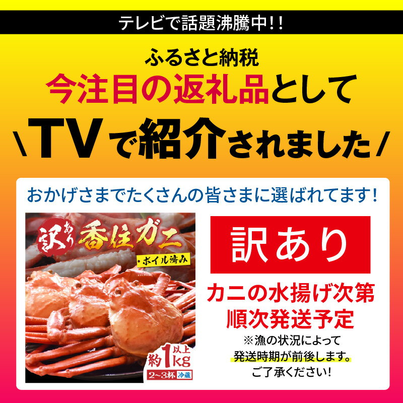 - 浜茹で香住ガニ 1kg 訳あり 兵庫県香美町の香住漁港で水揚げされた紅ズワイガニ