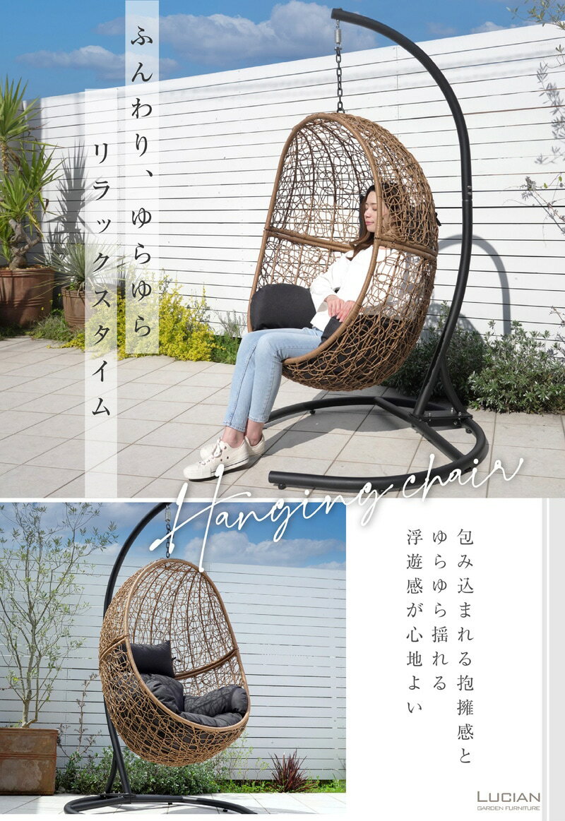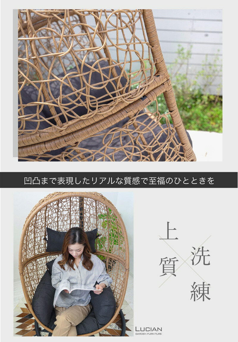 【ふるさと納税】ハンギングチェア エッグ型 木目調 クッション付き / コスティック ナチュラル 木目調 ユリカゴチェア カフェ風 インテリア たまご型 ベランピング ガーデン 奈良県 御所市