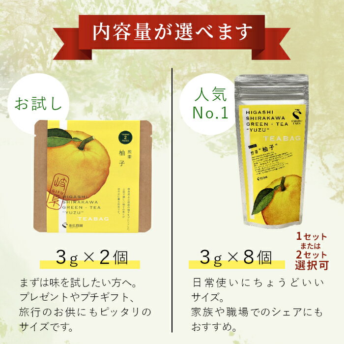 - 【ふるさと納税】煎茶ティーバッグ ゆず 2個 or 8個 or 8個×2袋 東白川村産 岐阜県産 柚子 煎茶 抹茶 ティーバッグ お茶 日本茶 ティーバック ティーパック ホット アイス おためし
