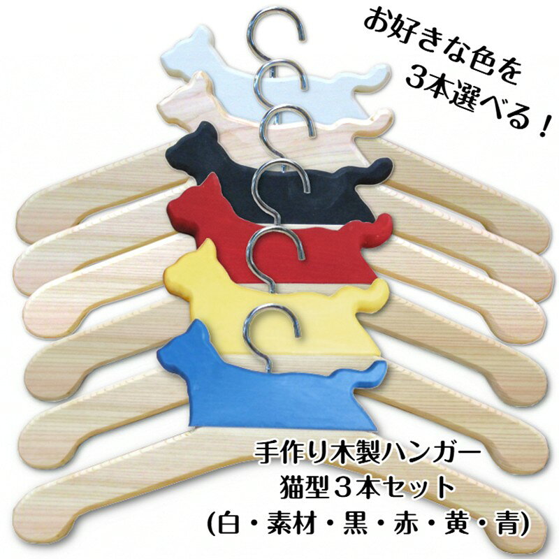 【ふるさと納税】手作り木製 選べるカラー 猫型ハンガー 3本セット
