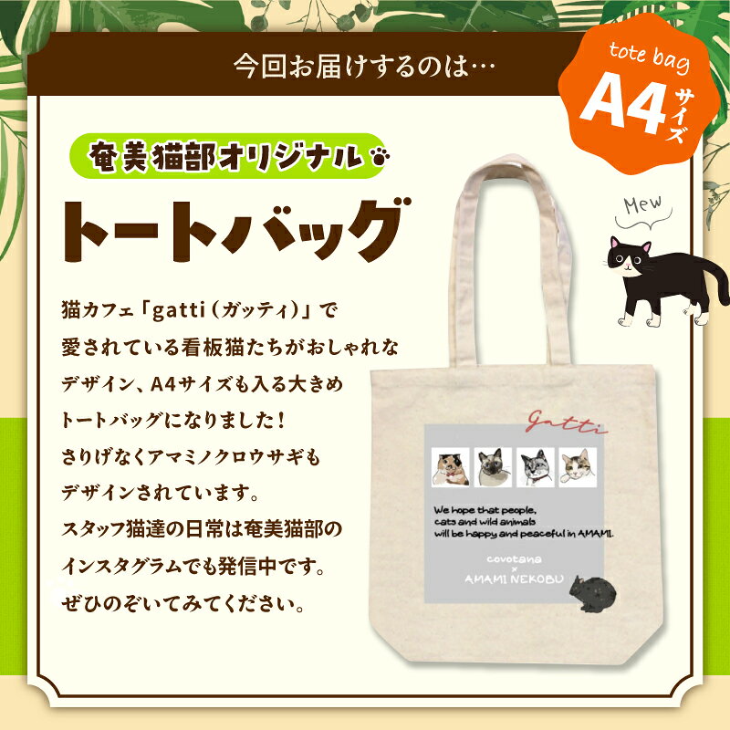 【ふるさと納税】【奄美の保護猫支援 ワクチン代】+ A4 トートバッグ バッグ 鞄 カバン かばん アマミノクロウサギ 猫デザイン 猫カフェ 保護猫 猫 支援 cafeCOVOTANA 鹿児島 奄美市 おすすめ ランキング プレゼント ギフト