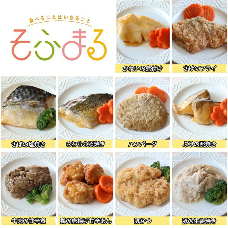 【ふるさと納税】そふまる やわらか食セット(10食入)/やわらか食 レトルト 冷凍食品 介護食品 冷凍介護食 嚥下食 高齢 食事介助 敬老の日 父の日 母の日 手軽 簡単 カレイ 鮭 サバ 鰤 鶏肉 豚肉 牛肉