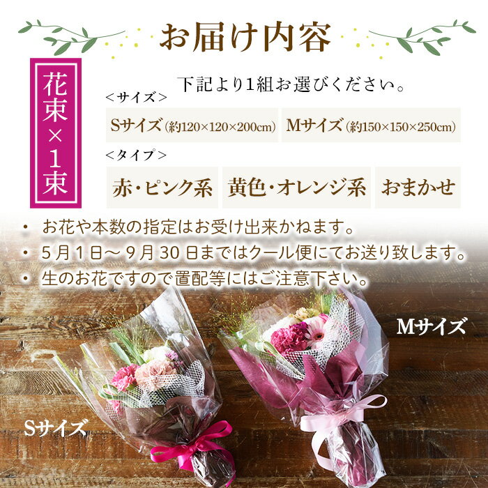- 【ふるさと納税】<選べるサイズ・タイプ>花束(Sサイズ/Mサイズ・赤ピンク系/黄色オレンジ系/おまかせ・1束) 花束 ブーケ フラワーギフト 季節の花 生花 花のギフト お祝い 誕生日 卒業式 発表会 記念日 プレゼント ギフト 贈り物 クール便対応 【m56-03】【Porte-Bonheur】