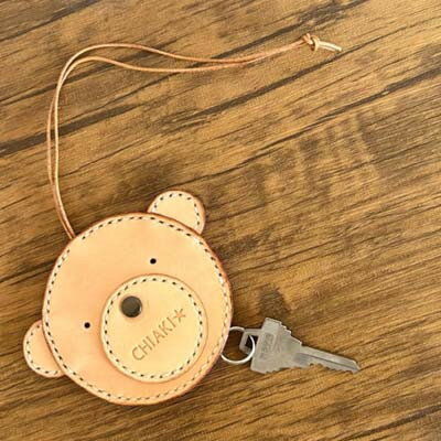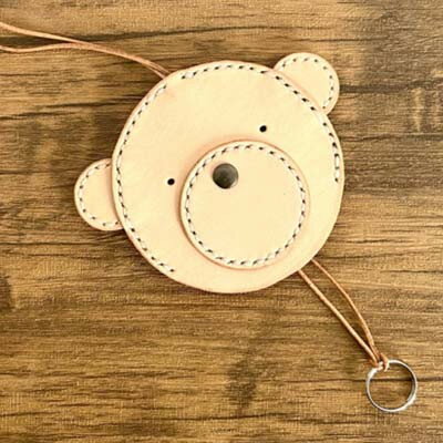 - 【ふるさと納税】《本革×手縫い》くまさんのお顔型レザーキーポーチ/お名前の刻印できます!【1672392】