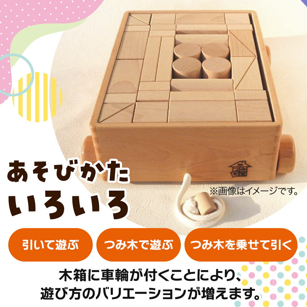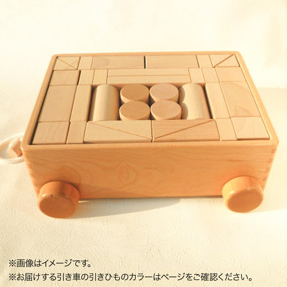 【ふるさと納税】引き車 白木二段(340×300×120mm)【選べる 引きひもカラー】天然無垢 白木つみ木 つみき 積み木 木のおもちゃ つみ木堂 群馬県 明和町