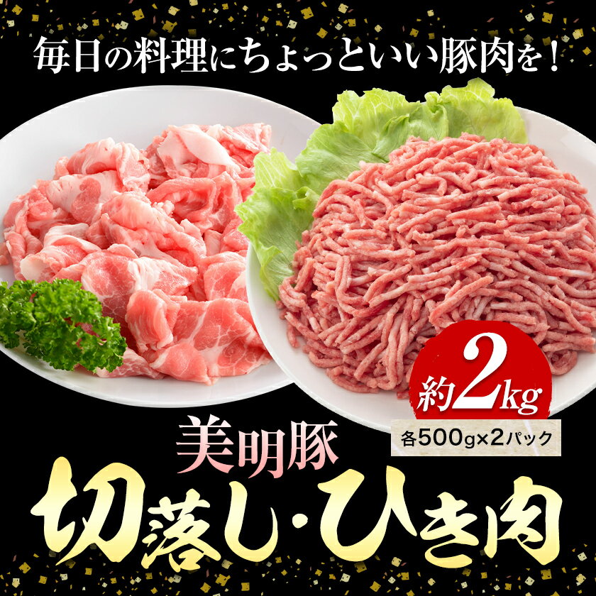 【ふるさと納税】美明豚 切落し ひき肉 各 500g × 2パック 計2kg 4パック ワークミート《30日以内に出荷予定(土日祝除く)》茨城県 河内町 SPF豚 びめいとん 部位 ひき肉 切り落とし 惣菜 豚肉 ブランド豚