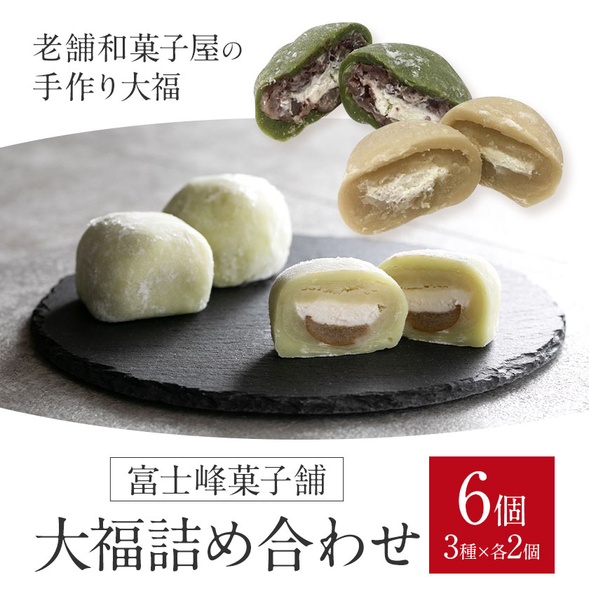 - 【ふるさと納税】和菓子 大福6個詰め合わせ シャインマスカット大福 抹茶大福 キャラメル大福 3種 各2個ずつ 富士峰菓子舗《30日以内に出荷予定(土日祝除く)》 和菓子 手作り 手土産 お饅頭 もちもち