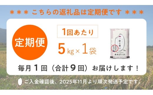 - 〈令和7年産〉 定期便 9ヵ月連続お届けゆめぴりか 5kg 精米 北海道 共和町 共和町米生産友の会 ※沖縄・離島への配送不可