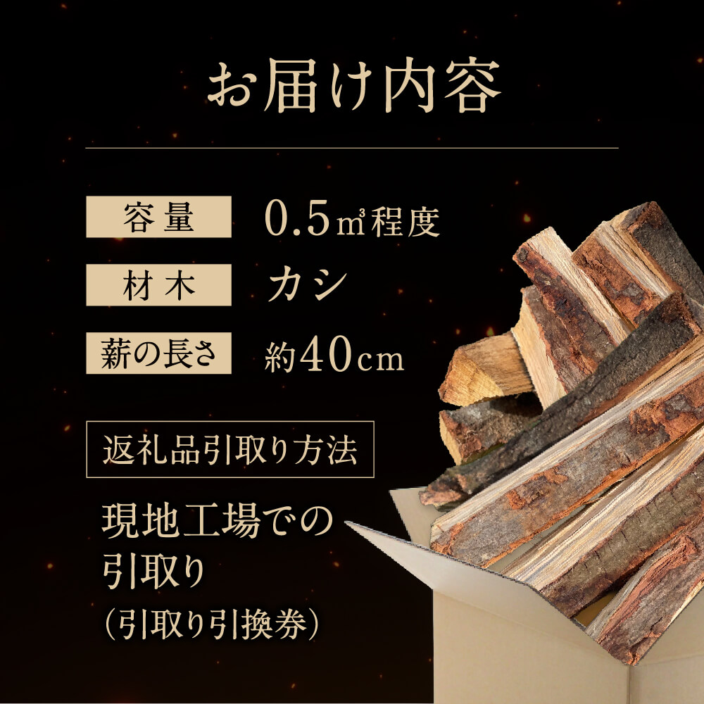 びわこの薪(カシ薪×0.5?・引き取り引換券) 株式会社ジンジ 滋賀県 東近江市 F-D03 薪 ストーブ キャンプ 焚き火 薪ストーブ 暖炉 火持ち 樫 カシ 乾燥薪 アウトドア