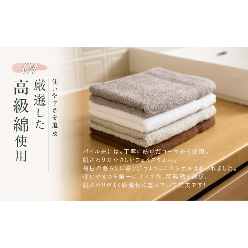 - コーマカラーフェイスタオル 2枚(パールホワイト) 【泉州タオル 国産 吸水 薄手 普段使い 無地 シンプル 日用品】 005A639