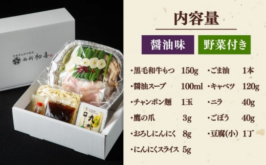 【年内発送】【お歳暮対象】[九州銘柄産 黒毛和牛 ] 博多 もつ鍋 西新初喜の醤油味1人前 (野菜付き) [離島配送不可] ▼IH対応 博多 一人用 もつ鍋 福岡 もつなべ 醤油 国産 国産牛もつ モツ もつ 桂川町/西新初喜[ADAX013]