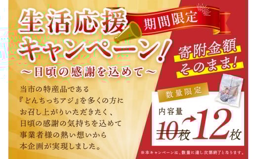 - 【生活応援品】浜田市のブランド「どんちっちアジ」干物特大(200gサイズ)12枚個包装 魚介類 干物 干もの 開き あじ 厳選 海鮮 セット 個包装 【019_1954】